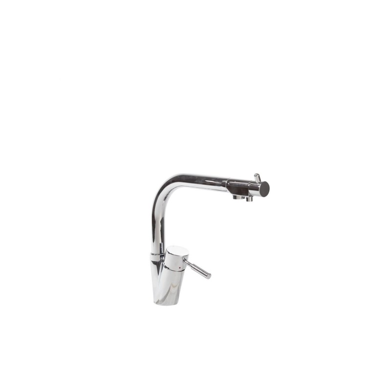 Grifo de cocina para equipos de ósmosis que aisla el agua del metal al pasar por el grifo evitando su contaminación consiguiendo así que el agua tratada mantenga su máxima pureza al evitar el contacto con el metal del grifo.