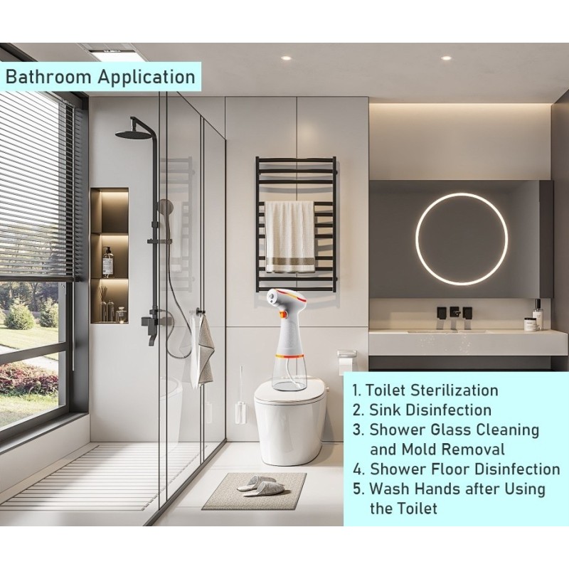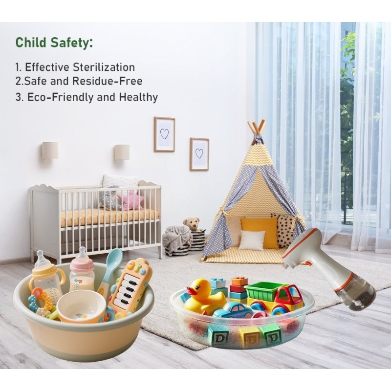 ✔ Pulveriza en inodoros, orinales, generadores de oxígeno, equipos de ejercicio, juguetes infantiles y cualquier superficie de contacto frecuente para evitar la contaminación cruzada y microbiana.