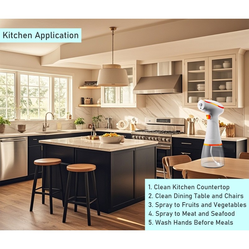 • Convierte el agua del grifo en un desinfectante potente, superando la eficacia de los productos químicos convencionales.