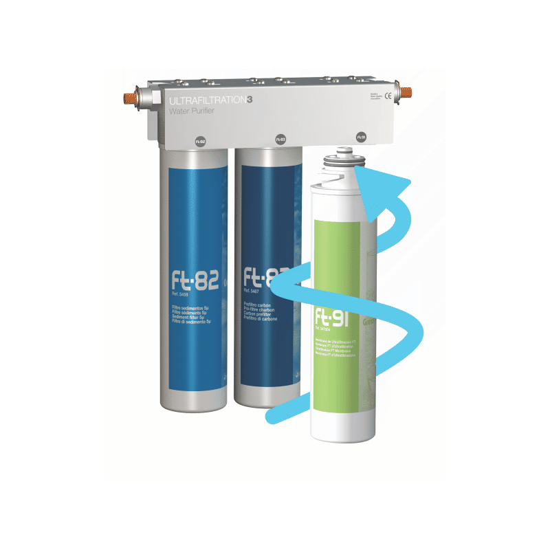 Dos filtros FT y membrana de ultrafiltración + kit montaje y grifo encimera.